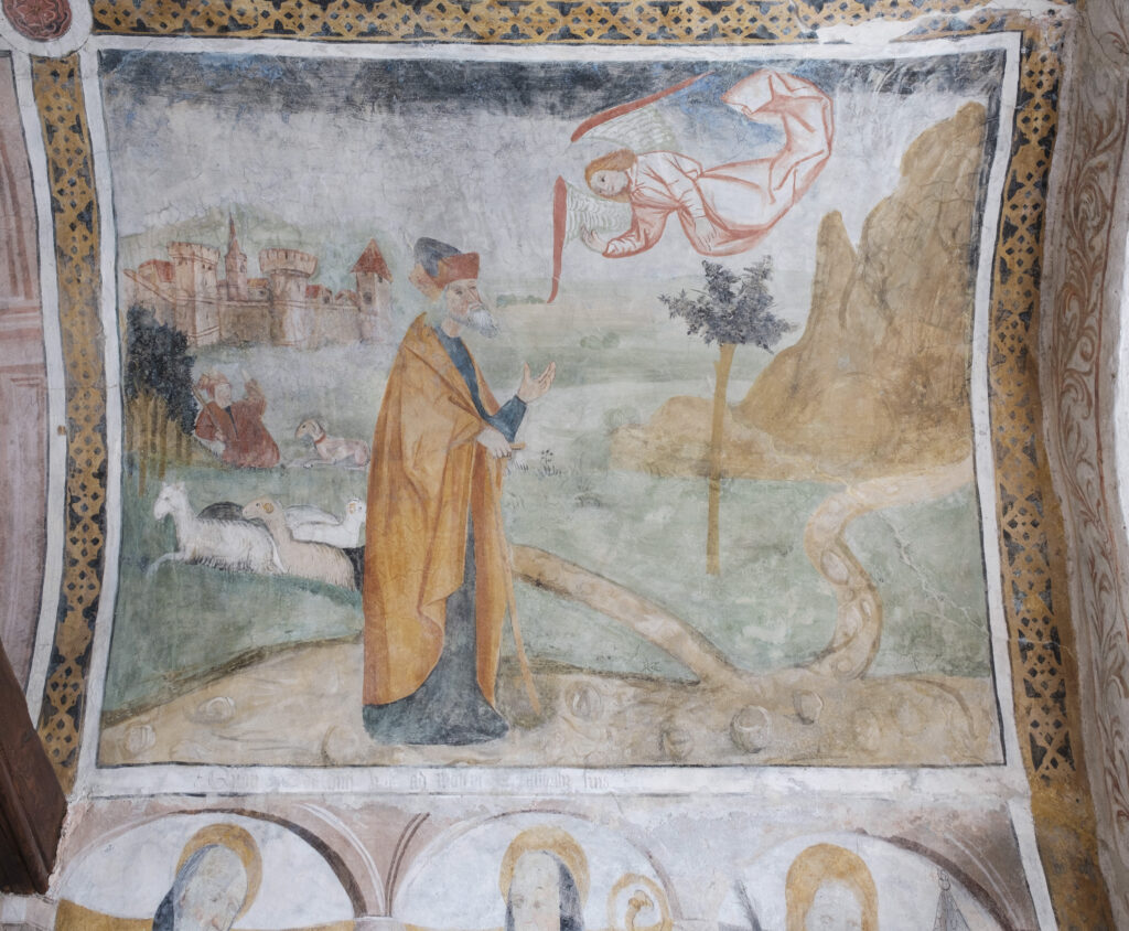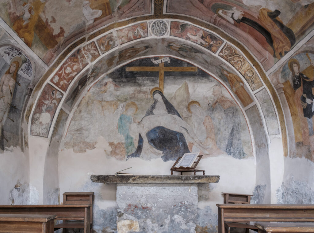 La cappella si trova ai margini della frazione Foresto di Bussoleno, in un’area detta della Posta, a memoria del fatto che in questo luogo avveniva la sosta ed il cambio dei cavalli e delle carrozze che percorrevano la via Francigena. Si tratta di un edificio composto da un unico vano quadrangolare sormontato da un tetto in lose a due spioventi. Sulla facciata principale rimane traccia di un’arcata d’ingresso, ora tamponata e sostituita da una più piccola porta. Non è noto quando la cappella venne edificata, ma al suo interno conserva un ciclo di affreschi dedicato alle storie dell’infanzia della Vergine, tratte dall’apocrifo Protovangelo di Giacomo, realizzato tra il 1475 e il 1490 da Antoine de Lonhy. Il tema iconografico principale è distribuito sulle volte della cappella, nelle quali sono visibili le scene della Cacciata di Gioacchino dal Tempio, il Sogno di Gioacchino nel deserto (da notare la similitudine tra la conformazione urbana di Susa e quella della città murata raffigurata sullo sfondo della scena), l’Incontro tra Gioacchino ed Anna alla Porta d’Oro di Gerusalemme, la Nascita della Vergine. L’area absidale è occupata da un’intensa raffigurazione della Pietà, mentre le pareti laterali ospitano una teoria di santi così distribuiti: a nord San Pietro Martire, San Bartolomeo, Santa Caterina d’Alessandria, San Sebastiano, un santo benedettino (San Mauro?); sulla parete sud: un santo benedettino (San Giusto?), Sant’Antonio abate, San Rocco, un santo vescovo (San Biagio?). Il recente restauro ha anche rivelato, sull’esterno, un’Annunciazione posta sull’arco santo. La presenza dei santi benedettini raffigurati sulla parete settentrionale testimonia l’antico legame della Comunità di Foresto con l’abbazia benedettina di San Giusto di Susa. La cappella, posta lungo la strada che conduceva in direzione di Susa, è uno dei due edifici campestri presenti in loco. L’altro, la cappella di San Rocco, è posto in posizione analoga a quella della Madonna delle Grazie ma lungo l’itinerario che da Foresto conduce a Bussoleno. La devozione alla Madonna delle Grazie rientra nelle celebrazioni liturgiche mariane. Il culto è qui associato alla festa della Visitazione di Maria.