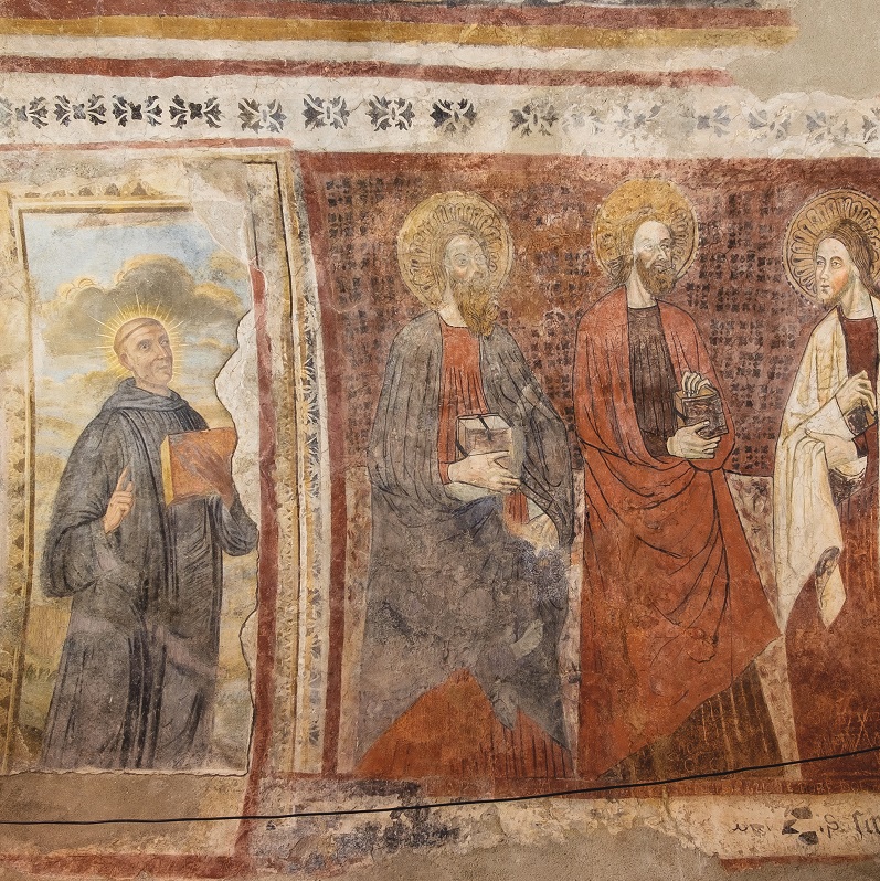 Nel 1189 Tommaso I di Moriana aveva concesso ai certosini i diritti sulla montagna di Orgevallis, e, due anni più tardi più tardi, gli dona alcune terre nella località detta “Losa”. La presenza certosina in loco però durò pochi anni: nel 1198 i certosini della Losa ottennero in dono le terre di Montebenedetto e del vallone dell’Orsiera, presso Villar Focchiardo, e già nel 1200 la comunità risultava essersi trasferita dalla Losa a Montebenedetto, forse a causa dei frequenti dissidi che insorgevano con la popolazione locale in merito allo sfruttamento dei pascoli. La primitiva certosa fu quindi trasformata in cappella e dedicata alla Vergine della Pietà. L’esistenza di una cappella già precedentemente all’arrivo dei certosini non è certa, tuttavia alcuni indizi documentari ed alcuni elementi architettonici presenti nel campanile inducono a non escludere tale eventualità. All’edificio primitivo, orientato con abside a est, fu aggiunto in epoca più recente un corpo di fabbrica di più ampie dimensioni, che costituisce l’attuale aula di preghiera. Sulle volte della primitiva della cappella si conserva un ciclo affrescato con la raffigurazione dei Dodici apostoli, di San Benedetto e San Basilio, datato al primo Quattrocento e realizzato dal Maestro di San Bernardo del Lajetto, cui si sovrappone in parte un analogo ciclo seicentesco. Oggi, nel Museo Diocesano di Arte Sacra a Susa si conserva l’altarolo ligneo, a edicola, realizzato da uno scultore della Germania meridionale nella prima metà del XV secolo. Al centro si trova la Vergine in preghiera sul Santo Sepolcro; in alto, sopra la sua testa, avviene invece la Crocifissione del Cristo. Sulle ante, invece, si trovano alcune scene della vita di Cristo: l’Ultima Cena, la Lavanda dei piedi, il Bacio di Giuda, Gesù condotto da Erode, Gesù è schernito come falso re e la Flagellazione. L’altarolo, infatti, si configura come uni “horologium Passionis”, ossia un Orologio della Passione di Cristo, nel quale la figura della Vergine in preghiera, inginocchiata fa da perno ad un ideale quadrante nel quale si dipanano le scene della Passione e morte di Cristo.