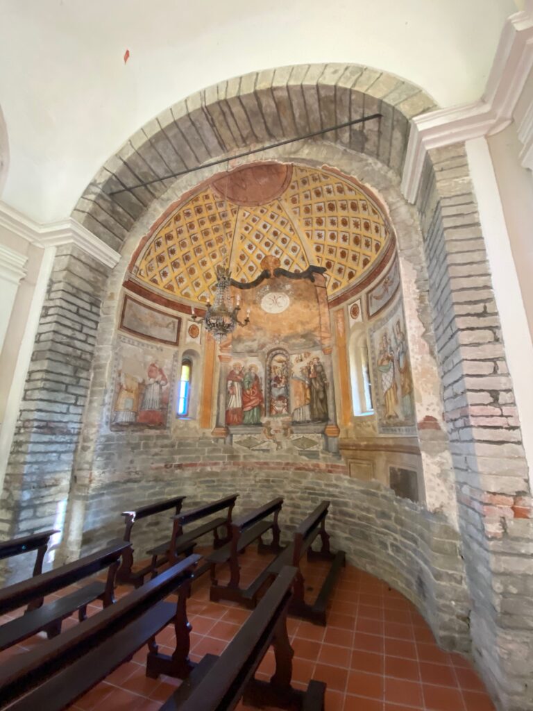 In stile romanico è rimasta solo l’abside, che si incastra nel fianco destro dell’attuale chiesa.