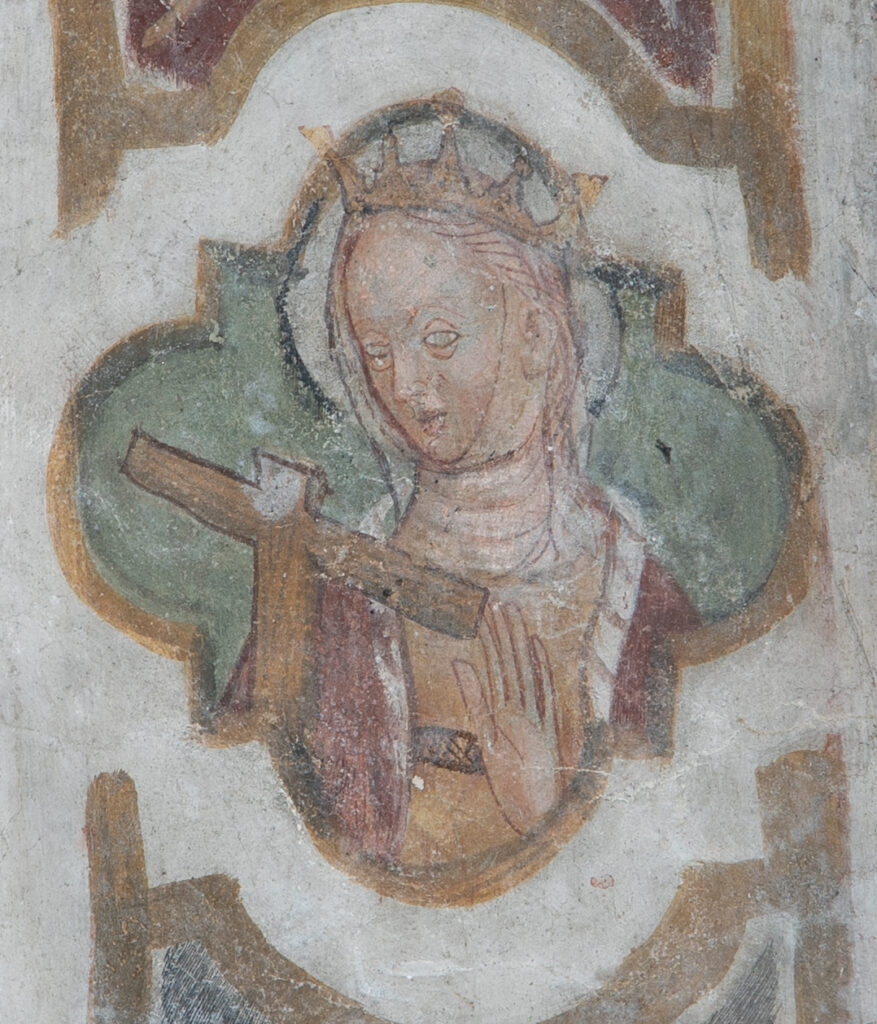 Nella vela frontale è raffigurato Cristo benedicente o “Cristo in Maestà” racchiuso in una mandorla e affiancato da santo Stefano in una posizione inconsueta, e una figura femminile, variamente identificata con la Madonna o Maria Maddalena.