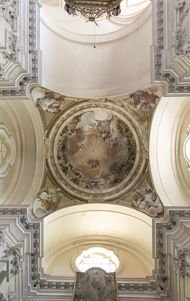 Le volte sono affrescate nel 1755 dal pittore astigiano Giuseppe Antonio Laveglia, con Lo Spirito Santo e angeli musicanti e la Gloria dello Spirito Santo e i quattro Dottori della Chiesa.