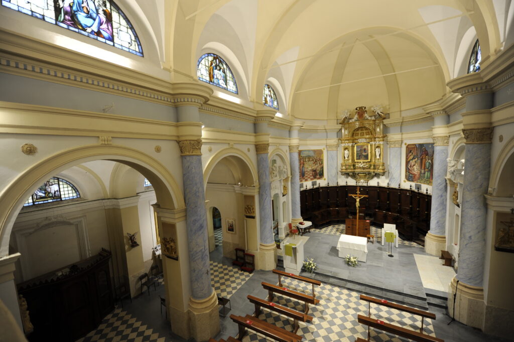Tra le opere d’arte di maggior pregio troviamo la grande pala sul coro raffigurante L’apparizione della Madonna e la miracolosa guarigione di una giovane cieca, opera iniziata dal pittore albese Fedele Finati nel 1917 e portata a termine dal torinese Luigi Morgari. Nella cappella di destra, il pittore alessandrino Lorenzo Laiolo realizzò tre dipinti ad affresco nel 1938: La Madonna in Gloria, Il primo pellegrinaggio al pilone votivo, L’apparizione della Madonna alla cieca. Numerosi sono gli ex voto, datati tra il 1842 e il 1922.