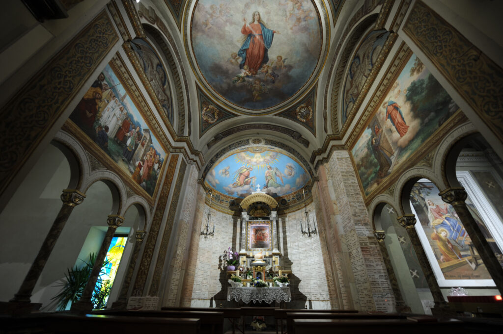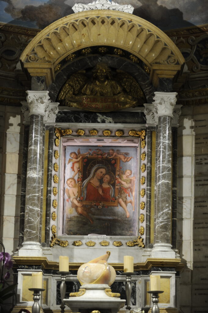 Caratterizzato da facciata in mattoni a vista e navata unica con abside e cappelle laterali, ha inglobato una preesistente cappella eretta nel 1817, in occasione del ritrovamento del dipinto tardo cinquecentesco raffigurante la Madonna del Buon Consiglio a cui si devono gli eventi miracolosi che hanno dato vita alla devozione mariana ancor oggi molto sentita.